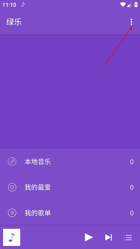 1、打开绿乐音乐App,进入对应主界面后,点击右上角的“三点”按钮,调出功能菜单。