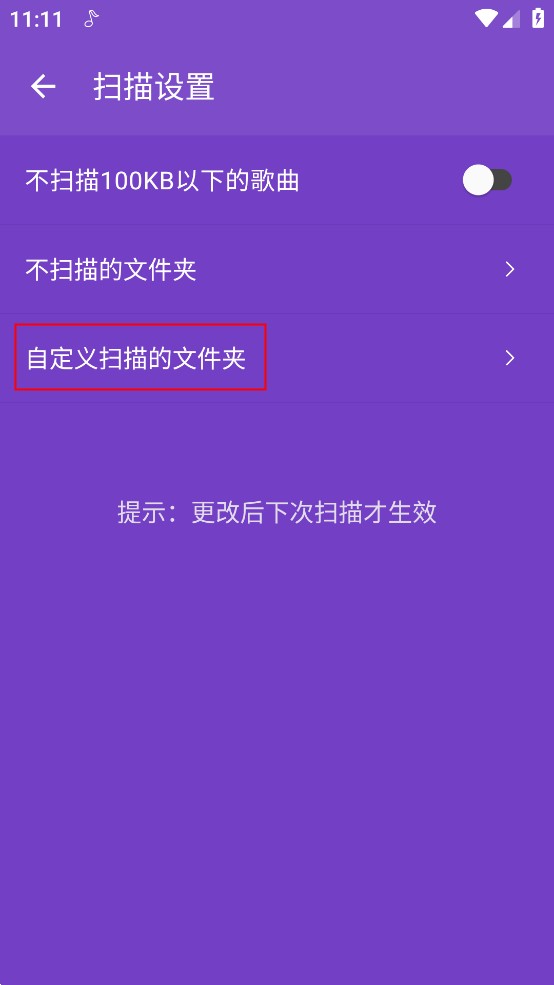 15、支持自定义扫描歌曲,同时适配Android 7.0以上外置SD卡扫描,全面覆盖本地资源。