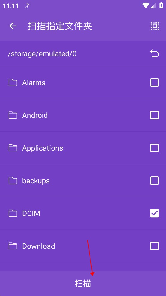 6、选中存有音乐文件的文件夹后,点击“扫描”按钮,扫描结束后,文件夹内音乐将导入App。