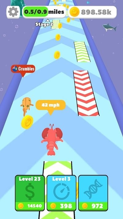 1、基础机制是通过滑动屏幕控制角色移动,收集散落金币提升能力值,同时躲避障碍物与敌人,还有加速道具可短暂提升速度。