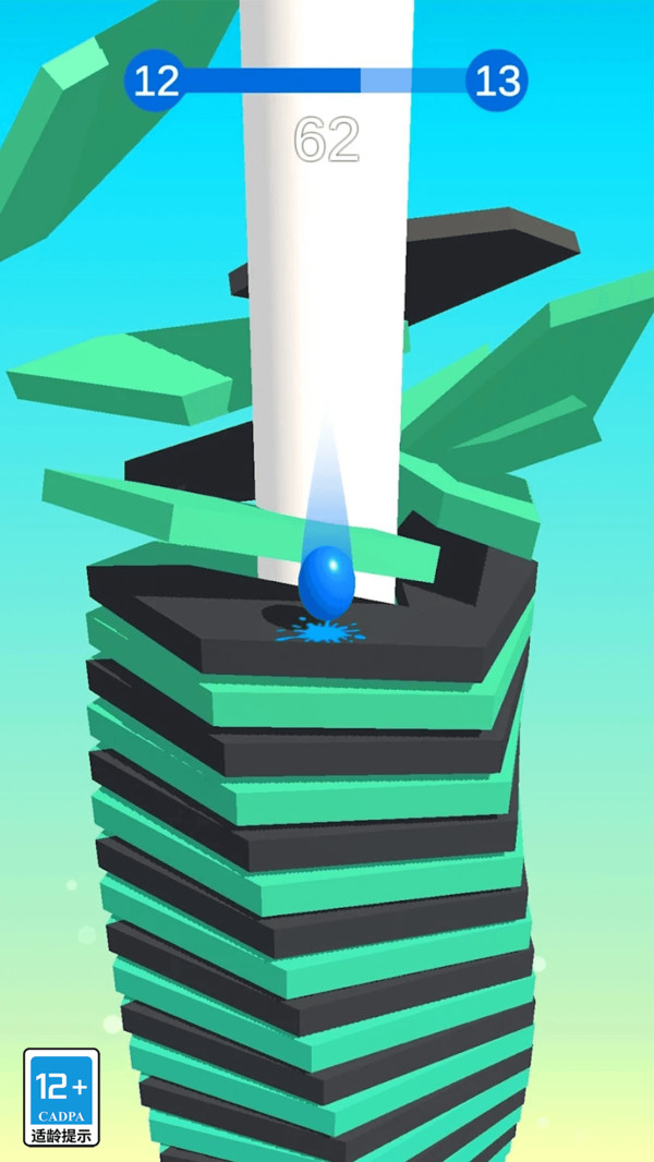 控制小球弹跳来找到方块最薄弱的点,当小球跳得越高那么下落的能量也就越大,也就能够击穿更多的方块。彩色球跳塔游戏会让关卡的难度随着游戏的进行逐渐提升,方块的数量也会逐步增多,在特殊的情况下,玩家也可以使用道具,让自己的小球具备更大的冲击力!