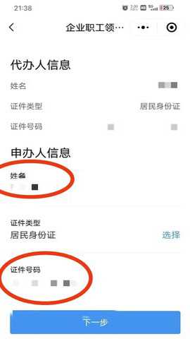 第九步:按提示填写代办人信息或申办老人信息,确认并点击下一步
