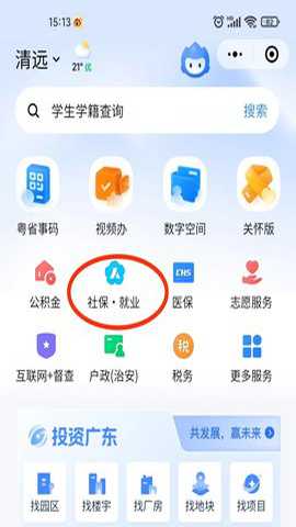 第三步:点击“社保·就业”;