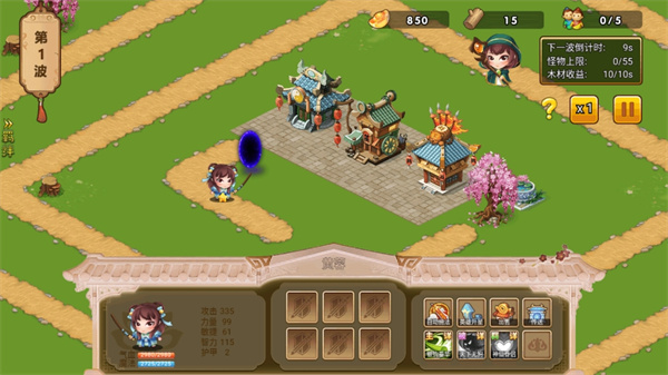 1、进入游戏后根据指引,先在路面上放置一个人物来帮助你来杀敌人保护住属于你的领地;