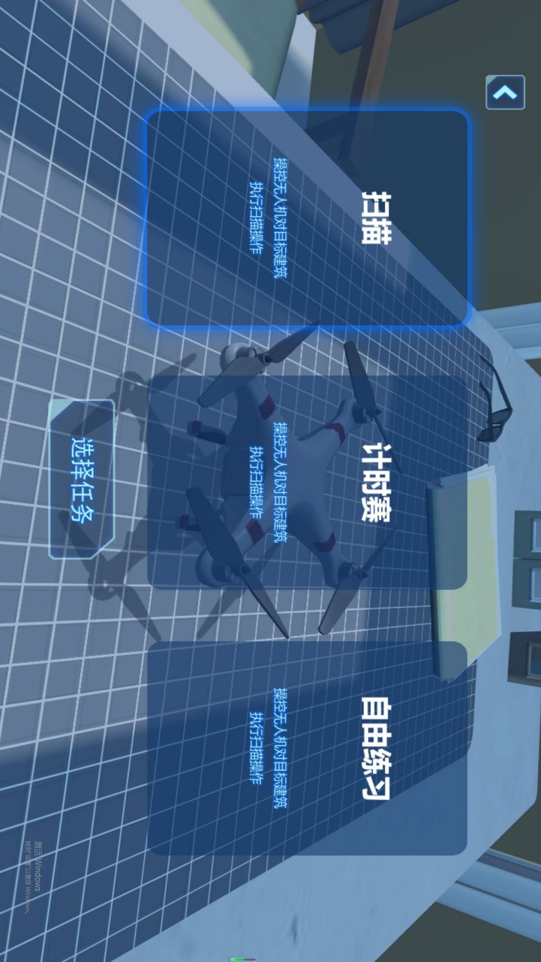 控制好无人机的方向,还有它的升高和降落,去对地图上的目标建筑进行扫描,这就是高空飞行无人机游戏里面最重要的任务!游戏延伸出了三种不同的玩法,分别是计时赛模式、自由练习和扫描模式。选择计时赛的话,就要在最短的时间内操作无人机对目标建筑完成扫描,其他两个模式的话就没有时间限制!