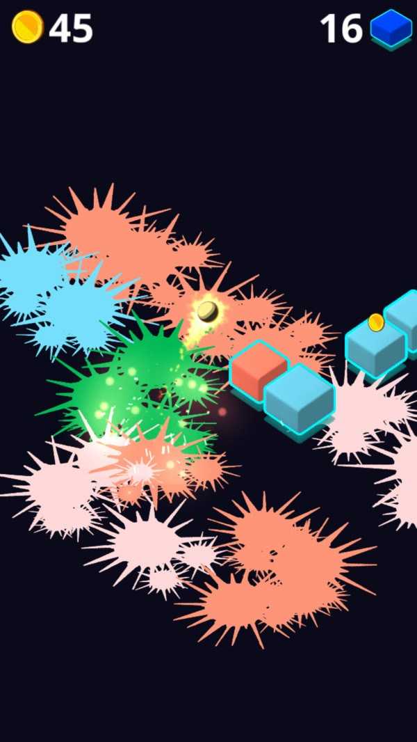 烟花飞溅游戏是一款超级炫酷有趣的休闲闯关游戏,游戏中玩家需要通过点击屏幕的方式来绽放不同颜色的烟花。游戏操作也非常的简单,玩家只需要点击屏幕就可以使小球进行前进,当小球精准的落入不同颜色的方块上就可以触发点亮烟花的效果。