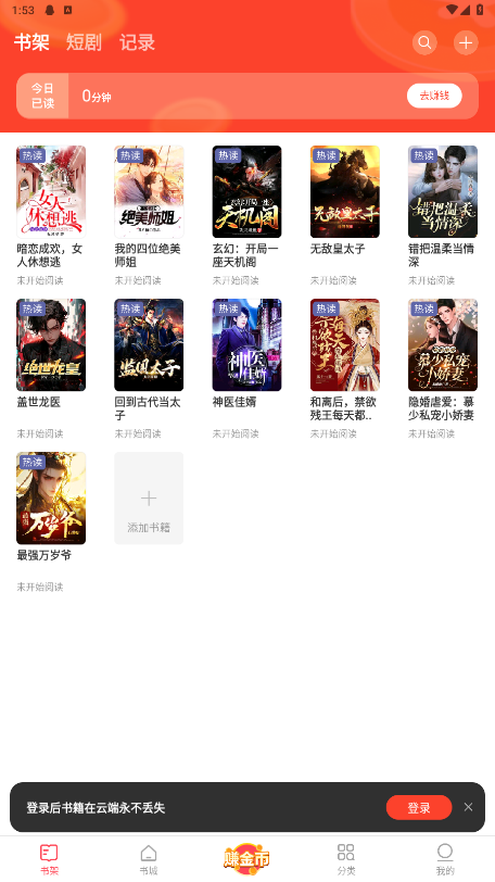 在赚金币板块,可以看见许多听书、读书的金币任务。只要多看即可获得多多金币。