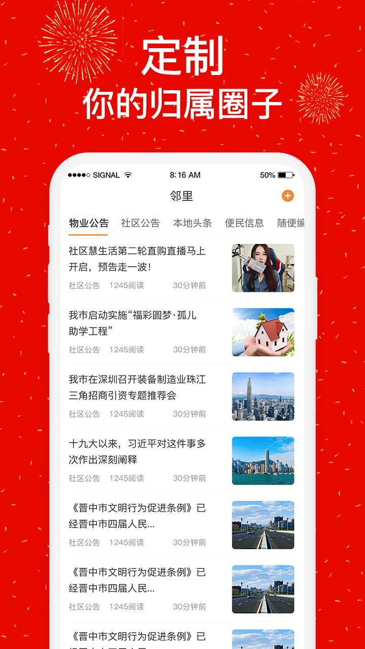 【定制,你的归属圈子】组建、发现身边的兴趣圈子,圈子群聊、活动、话题等随时参与;