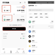 或者您也可以在选择「支付」币种后,点击右上角「全部」,一键输入可交易币种最大量以发起询价。(注:「支付」币种在选择OKT后,系统会在余额中自动保留部分OKT作为gas费以使交易顺利完成。)在选择币种下拉列表中,您可以在上方搜索框中输入想要交易的代币名称或者合约地址搜索代币。