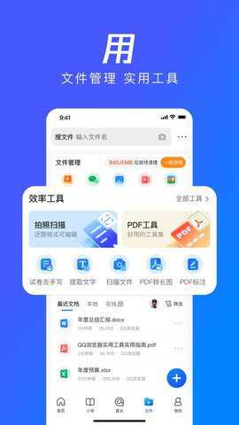 3.一键快速处理各种数据文档;提供视频处理、格式转换、照片扫描、文件解压缩等工具。