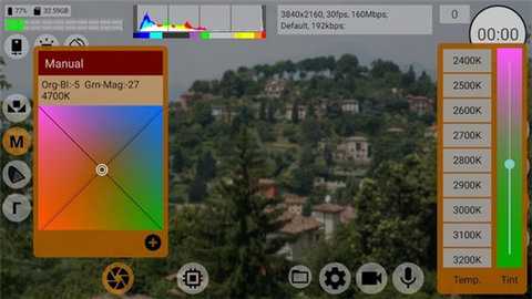 曝光:关闭自动曝光,使用 手动曝光 (M) 模式。根据场景调整 ISO(感光度)和 快门速度。通常快门速度设置为帧率的两倍(如24fps时设为1/50秒),以获得自然的运动模糊。