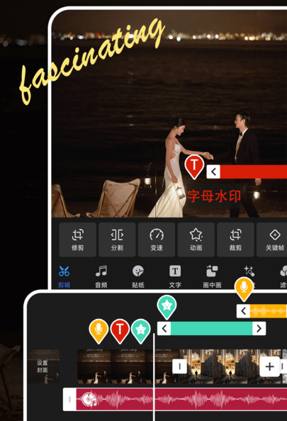 2、支持多轨道剪辑,可自由调整视频片段顺序,叠加多样视觉效果。