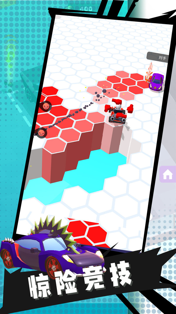 烈焰战车游戏是一款危险无比的赛车游戏,玩家需要在瓷砖一样的跑道上行驶,路过之后赛道就会消失,而且你只要转弯或漂移失误,就会瞬间跌落,失去比赛资格,很考验玩家的操控能力,同时你还要通过撞击把对手挤出道路,想尽一切办法,取得胜利改装战车。