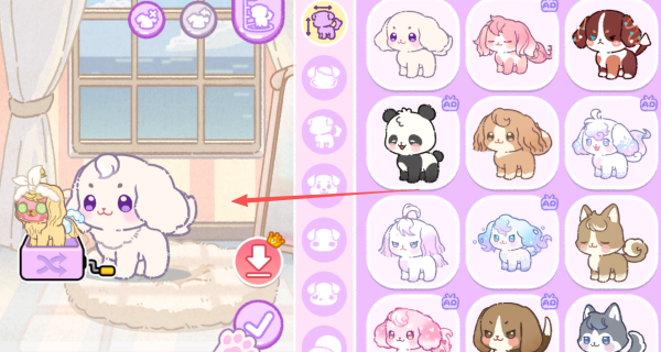 3、多样狗狗品种收集,涵盖不同体型、性格的可爱狗狗,每只狗狗都有专属习性与需求,收集与照料过程很有趣。