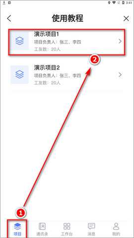 进入项目模块:打开鱼泡工地考勤App,登录账号后,在主界面找到并点击“项目”模块。