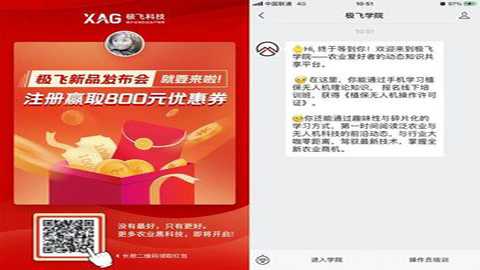 (2)方式二:扫描“极飞学院”推荐二维码,或“长按”二维码进入