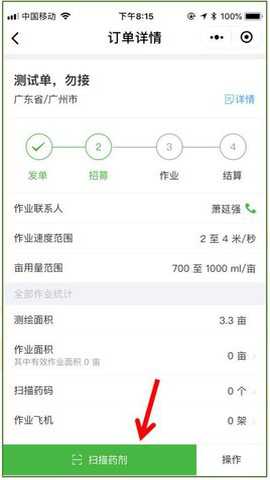 2、实际作业前,请务必将药瓶瓶身的唯一二维码扫描登记到「极飞农服」订单中: