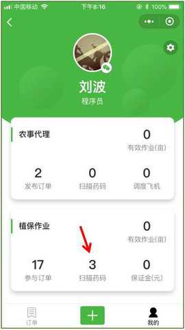 可以在「极飞农服 - 我的」界面中,查看扫描药码的数量。