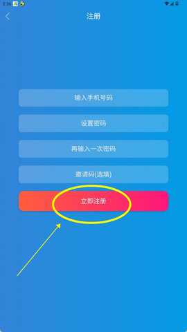 4、在注册页面,输入手机号码和设置密码,如有邀请码也可以填写。完成后点击【立即注册】即可。