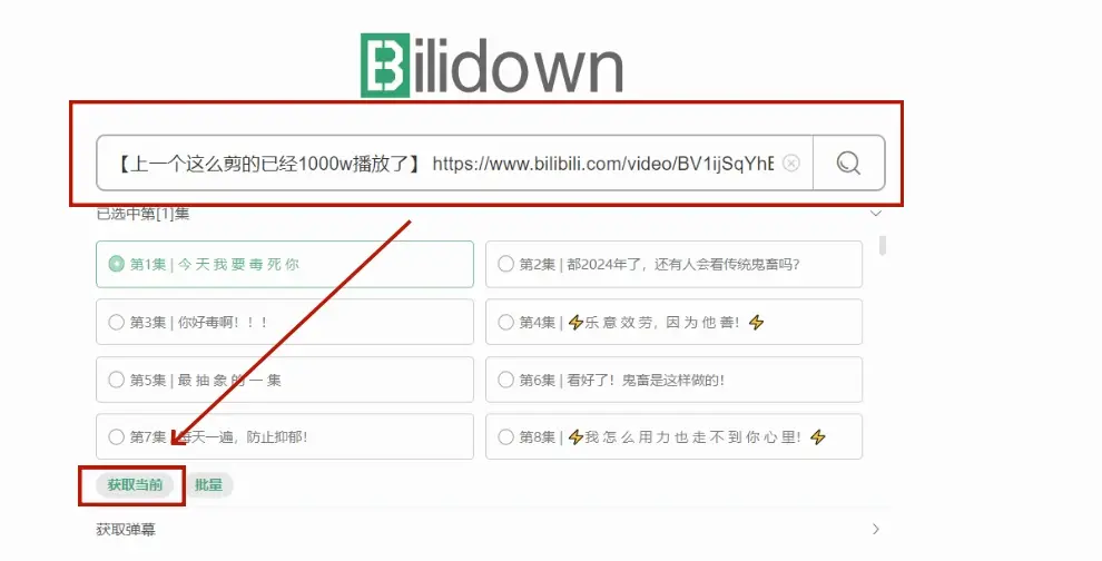1,将视频链接粘贴到网站中,等待识别成功后,选择“获取当前”。