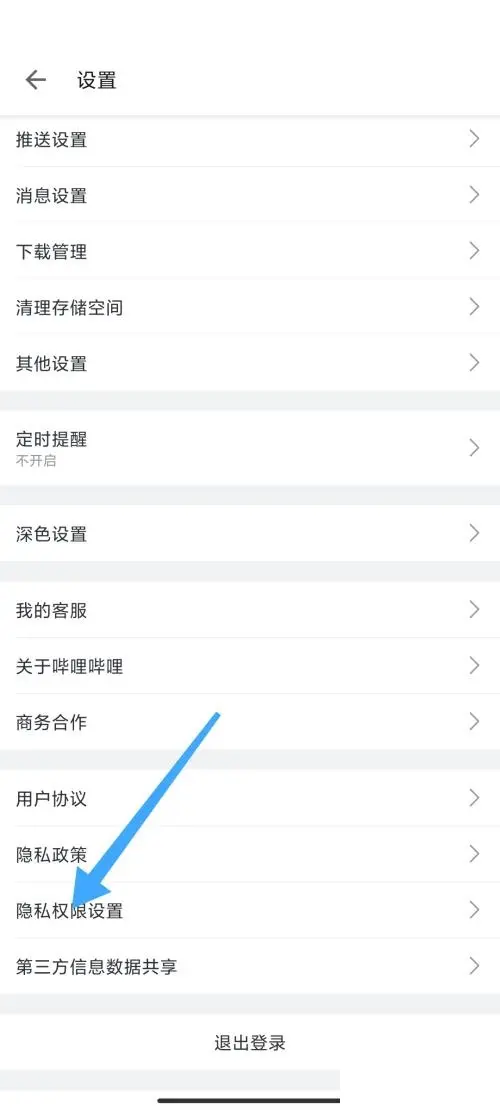 3、接着点击【隐私权限设置】。