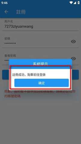 用户名和密码符合要求的话,就会弹窗提示“注册成功,点击前往登陆”;