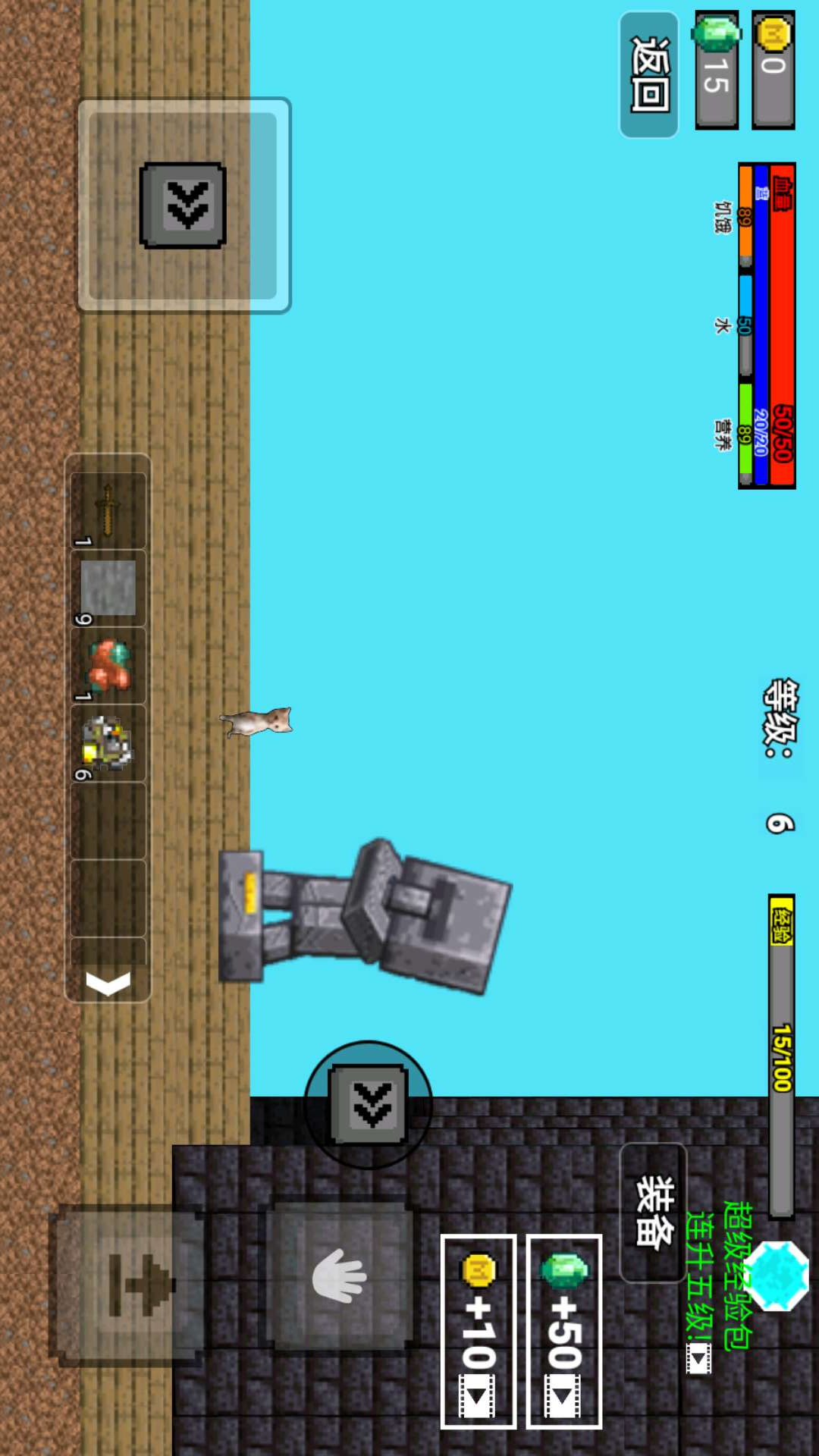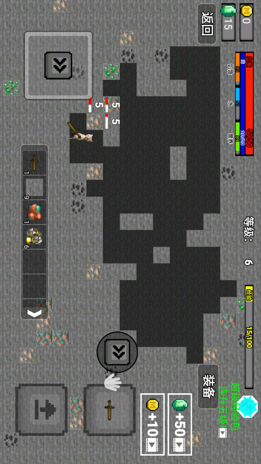 3、能持续升级镐子和背包,镐子变强挖得快,背包大了能装更多矿。
