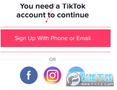 1.首先打开baitiktok,接着在打开的页面中,点击“Sign Up With Phone Or Email”。