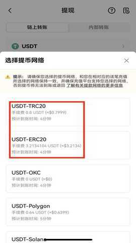 4、提现网络选错,提现无法正常到账。