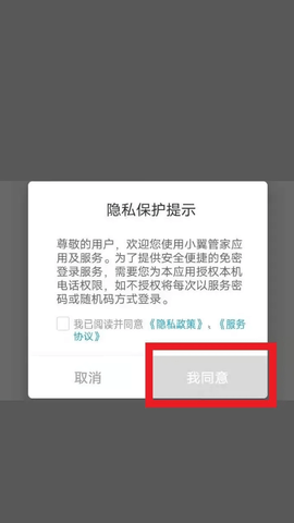 阅读协议,点击同意,