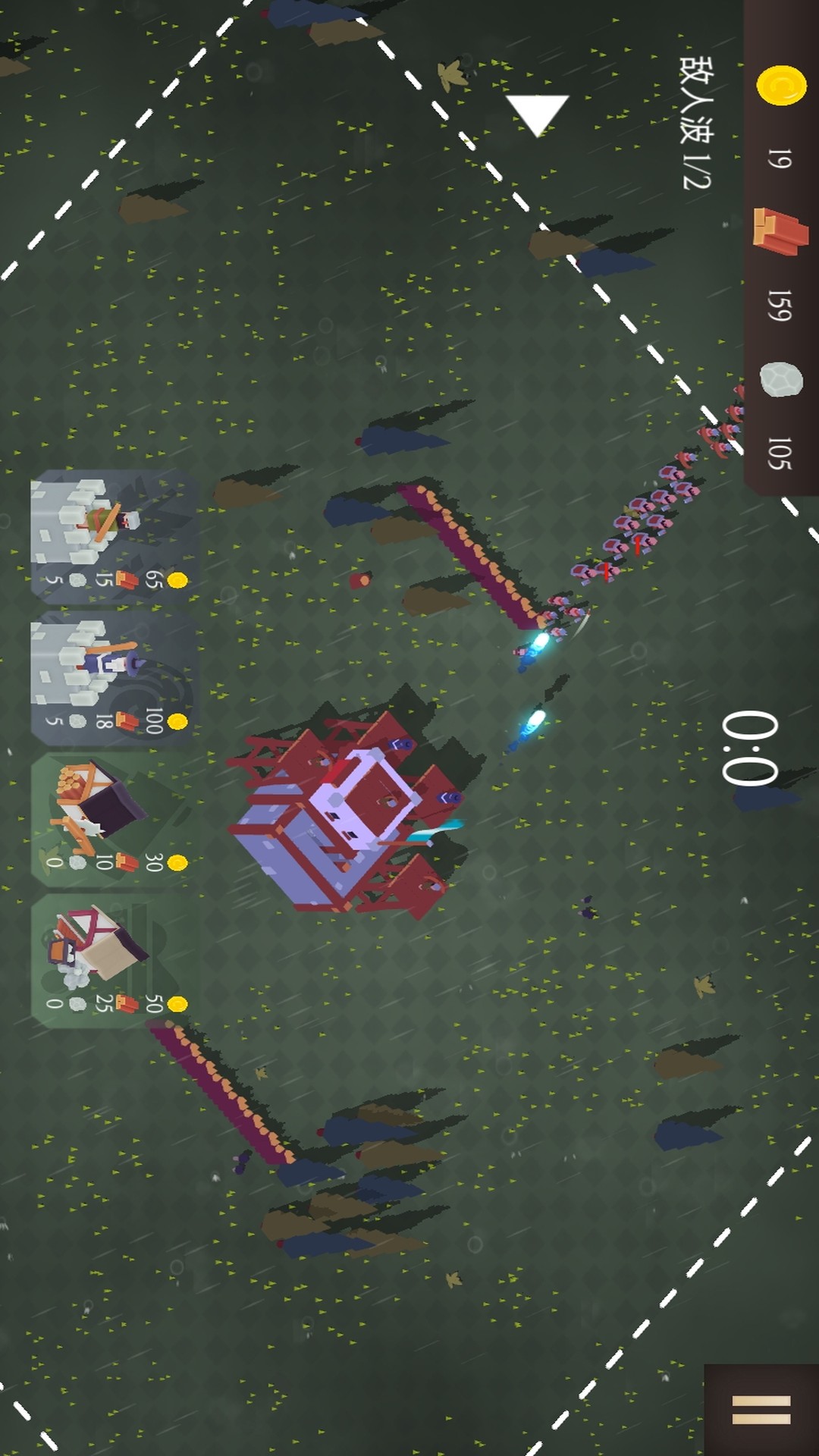 2、征布置士兵阵型,迎接敌人波次进攻,指挥士兵拦截、反击,守护大本营不被摧毁。